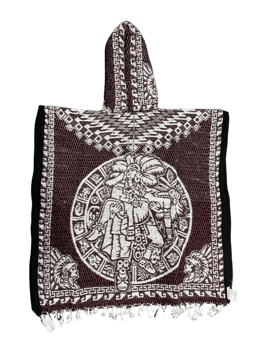 Youth Burgundy and White Mexico Eagle with Warrior Carrying Sleeping Woman Poncho/Gaban with Hoodie / Gorro